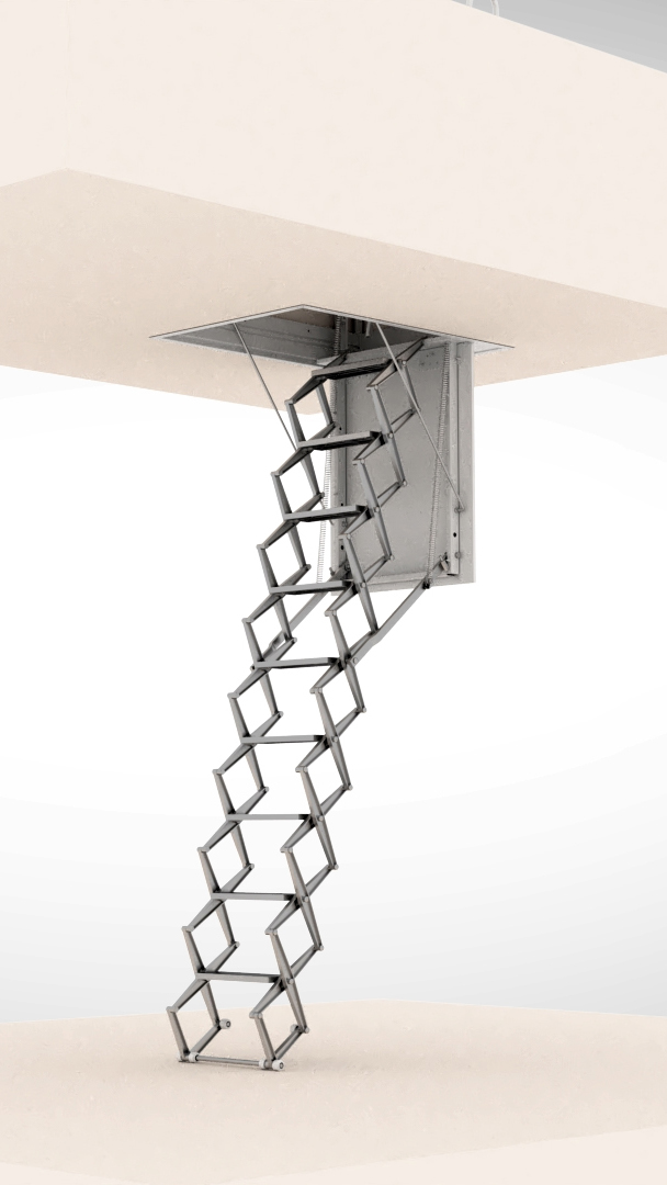 In case of ceiling’s thickness above standard 28cm the ladder features a metal grid equal to the space between floors.