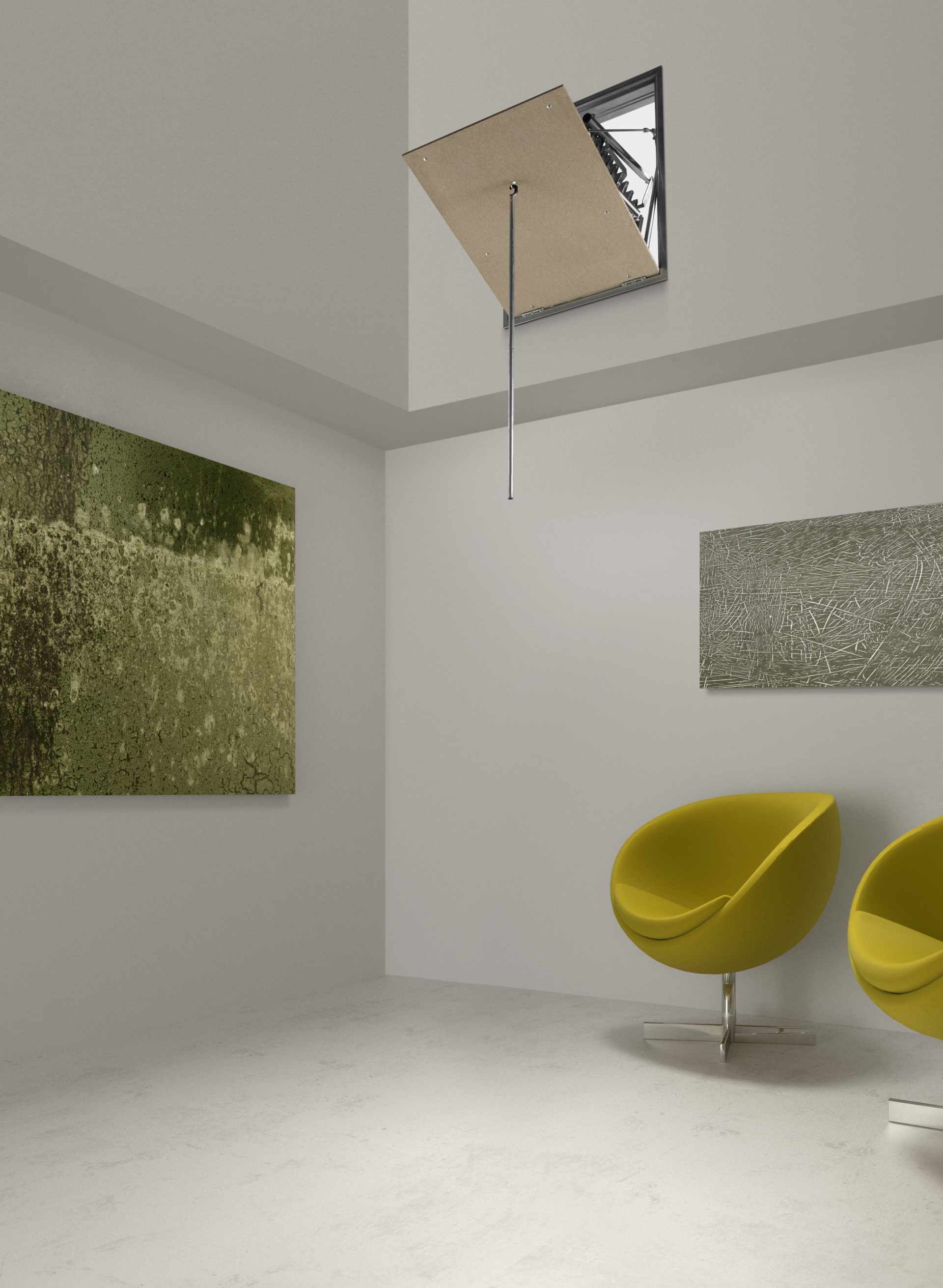 Scissor ladder in die-cast aluminium for vertical walls. Frame painted in white.