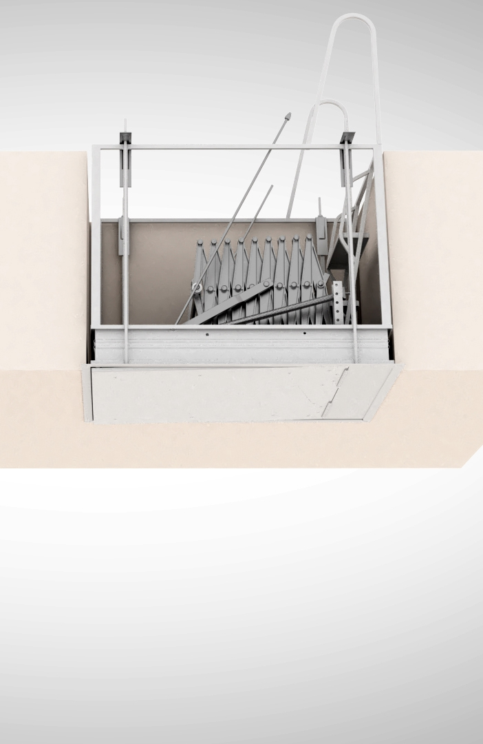 O disnível forma-se porque a escada sempre fixa-se às dobradiças da tampa: não pode ser fixada mais para cima, porque seria imposível a sua abertura completa. Segue-se que o espaço vazio pode ser superado com o auxilio dos degraus adicionales, quem facilitam a subida e a descida da pessoa.